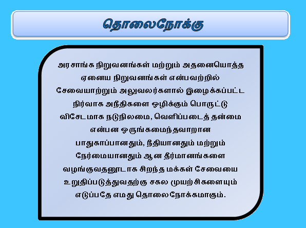 - இறுதியாக, எமது நாட்டின் சகல நிர்வாக முறைமையை தரமுயர்த்துவதே எமது பணியாகும்.